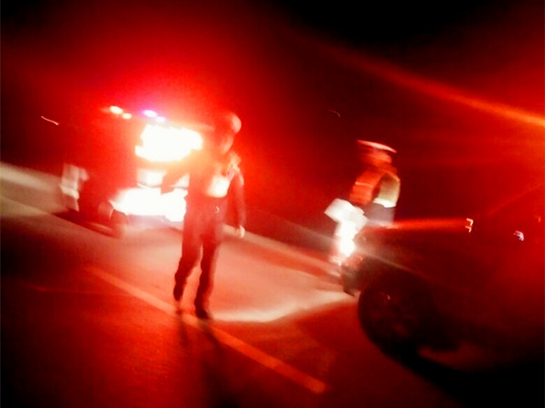 因现场条件所限,男子的伤势不太能够看得清楚,警方接警后抵达现场处理事务,在男子身边已经被安放上了安全提醒雪糕筒,男子倒地区域已经被车灯照亮,以免被来车撞上。