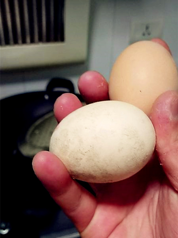 2、把蛋放在手掌心上翻转,良质鲜蛋蛋壳会比较粗糙,重量适当;倘若是劣质蛋,手掂重量轻,手摸有光滑感,说明鸡蛋已经不新鲜了。
