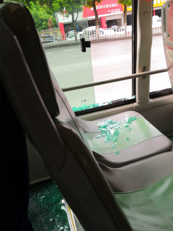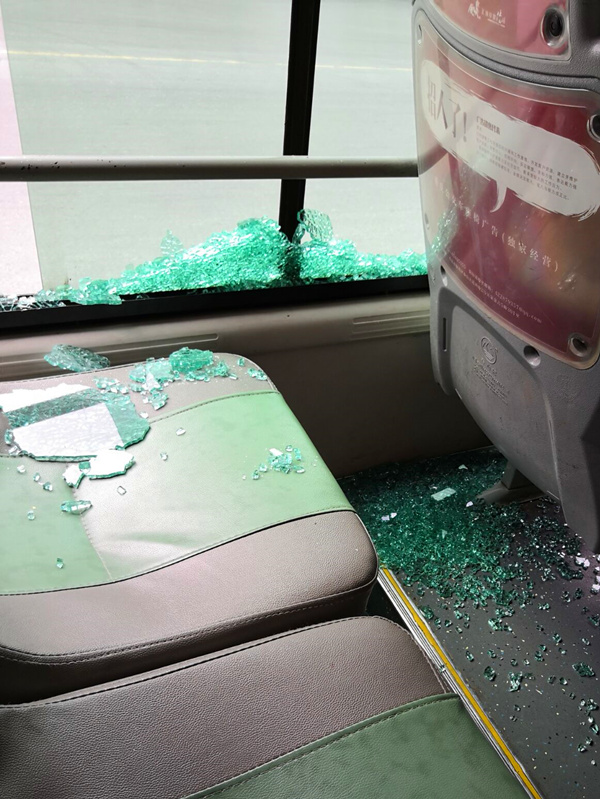 女子乘公交回家 不料车窗碎了满是玻璃渣