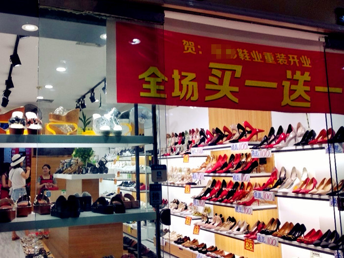 原来是一家鞋店,重新装修后开业了,上了些新品搞活动,全场鞋子都可以“买一送一”,看着新装修再看看放在货架上的鞋子,还真令不少市民心动,别说“买一送一了,光买一双都有折扣,还是比较优惠的。”市民如是说,心里想着一定要好好逛逛,买一双回家。