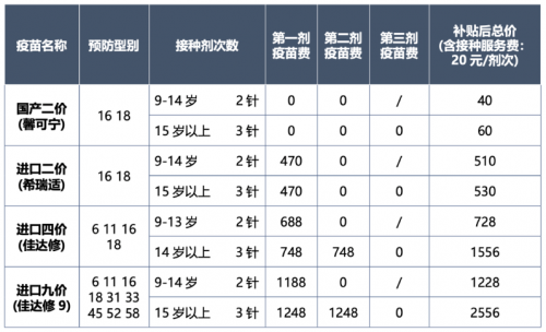 重庆市初二年级在校女生HPV疫苗接种价格参考